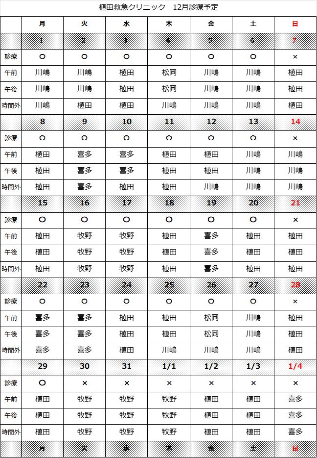 12月診療予定